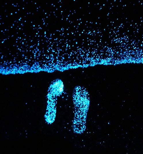 O fotógrafo taiwanês Will Ho registrou um fenômeno incrível durante suas férias no local. O fenômeno acontece quando as ondas quebram na areia e é produzido por milhões de minúsculos organismos, chamados de fitoplâncton bioluminescentes, que brilham como se fossem vaga-lumes.