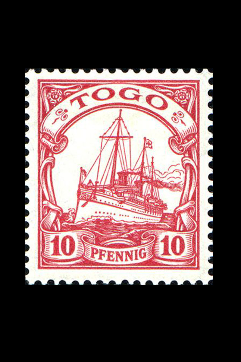 Um dos primeiros selos usados por uma nação africana foi emitido pelos alemães durante o período colonial. Essts selos foram principalmente destinados aos viajantes alemães e aos militares que moravam ali naquela época. Este selo possui diferentes variedades e, portanto, diferentes preços. O Togo 10 (foto) é avaliado em US$ 100.000 nos dias de hoje.